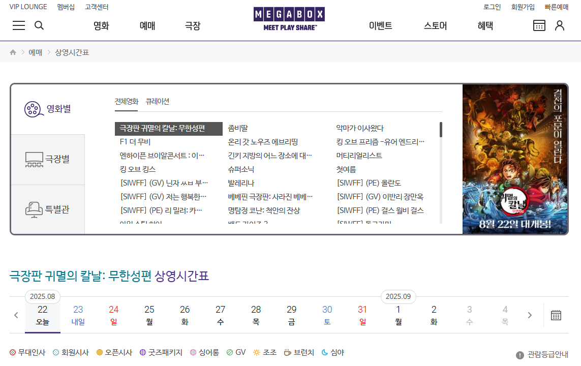 메가박스의 영화별 상영시간표를 알려드립니다.