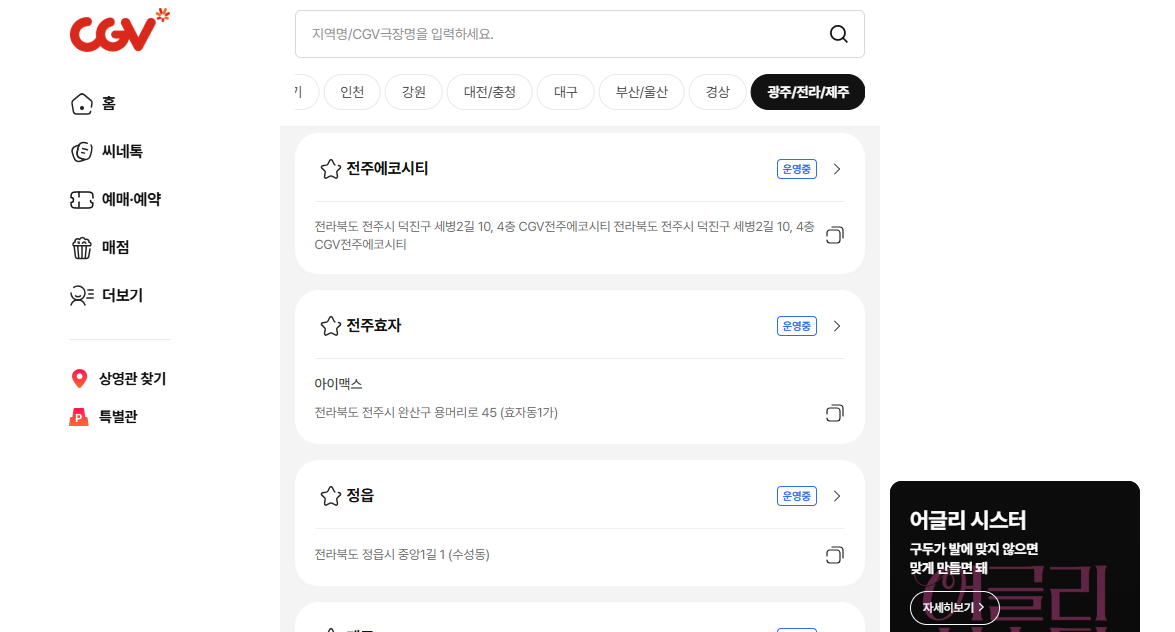 2. 전주효자, 전주고사, 전주에코시티 중 원하는 영화관 선택